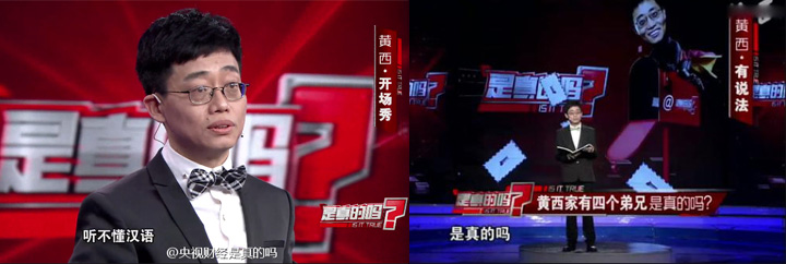 但令他真正為國人所知,還是受邀到美國白宮表演,當面開美國總統的玩笑,獲得現場兩千四百位政界和新聞界人士起立鼓掌的“壯舉”。如今,黃西成為了央視節目《是真的嗎?》的主持人,得到了一個更好的展示才華的舞臺,那么,《是真的嗎?》究竟是個怎樣的節目呢?請聽小編娓娓道來。