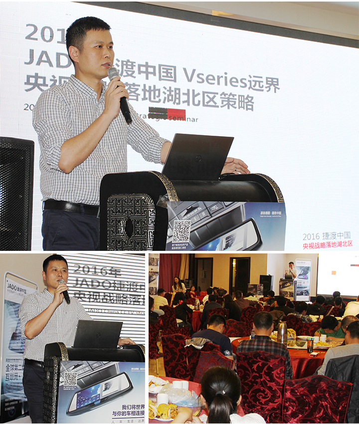 JADO捷渡中國總經理陳總在會上發布了JADO捷渡中國遠界系列央視戰略在湖北落地的策略,同時,這次也是JADO捷渡中國與CCTV中國中央電視臺《2016年廣告合作》正式簽約之后首次在湖北地區正式發布新聞。