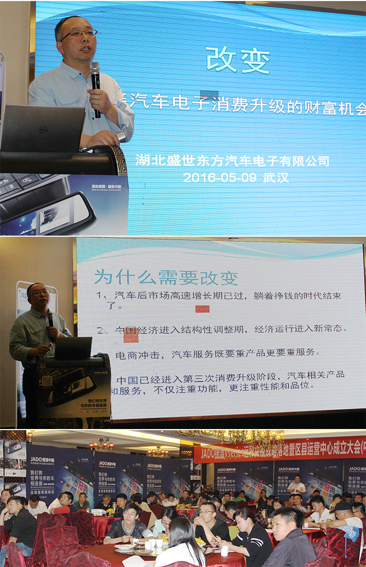 2016年5月9日,由武漢盛東方聯合JADO捷渡中國舉辦的“JADO捷渡V series遠界央視戰略落地暨湖北區縣運營中心成立大會”在武漢新海景酒店圓滿舉行,JADO捷渡中國總經理陳問文、盛東方總經理彭春文、副總經理孫雅蓮及湖北各大區縣汽車服務店實力代表蒞臨現場,見證JADO捷渡中國央視戰略落地湖北的重要一刻。